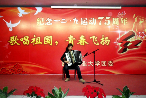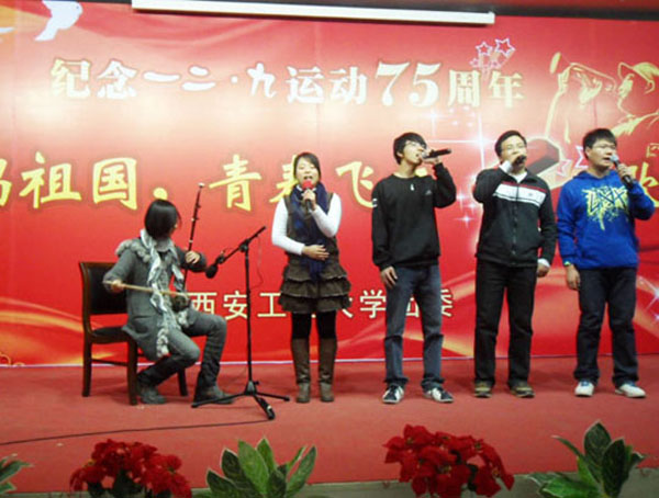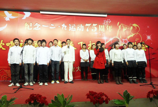 (本网讯)12月8日晚,九游网页版登录入口团委在未央校区举办纪念“一二·九运动”75周年——“歌唱祖国 青春飞扬”红歌会。之前,校团委宣传部对来自不同院系、不同年级的30余个报名的曲目,进行了初审、复审等环节,最终挑选了14个优秀的表演团队及个人登台演唱。