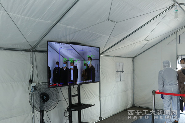 随着祁玉龙宣布“演练开始”的一声令下,“返校学生”戴着口罩、手持健康码,依次通过红外热成像测温舱。其中一名“发热”学生很快被现场安保人员发现,并引导其走专用通道,到达临时隔离点。校医院护士给该学生加戴外科口罩,并用水银体温计复测体温,同时询问其流行病学史……“返校学生”开学入校核验身份、体温异常应急处理有序进行。