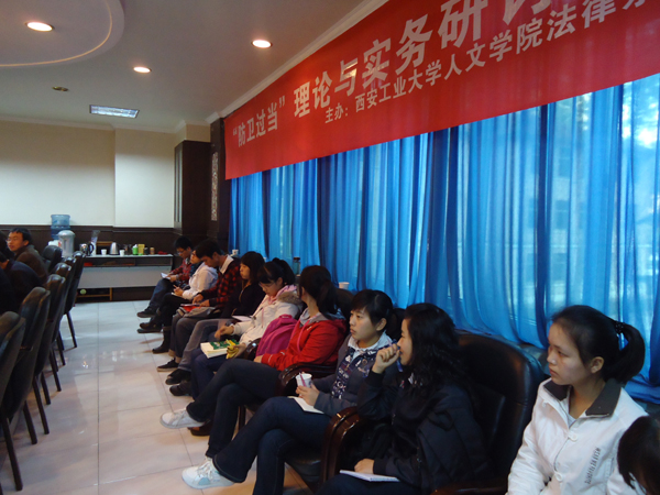 研讨会以近期发生的社会热点案件即东莞林振祥案件以及陕西肖昌勇案件为契机,围绕防卫过当的理论与实务问题展开了热烈的探讨。陕西省高院刑一厅副厅长刘仲屹法官首先对关于防卫过当与否的认定、防卫过当行为主观心态、防卫过当行为罪名的确定以及量刑的把握等相关问题进行了梳理与澄清,并指出防卫过当在司法认定中应该注意的问题;同时,刘法官还以高院不同时期的判决为据,指出法院系统十年来在保护公民正当防卫权方面做出的努力。在激烈的研讨中形成三个焦点问题:一是如何具体判断、认定防卫行为是否明显超过必要限度造成重大损害,二是正当防卫与防卫过当的关系问题,三是关于特殊防卫权成立条件的准确理解与司法适用问题。与会嘉宾不仅旁征博引,比较中外立法与理论差异,更是对我国的司法实务与理论的共生互动问题给予了热切的关注,分析法理、剖析案例、反思立法,思索法律规定与社会现实、司法裁决与舆情民意的平衡与和谐,对防卫行为正当与过当、合法与非法的界定以及刑事责任的承担等理论与实务问题深入挖掘解剖。陕西高院刑一厅副厅长刘仲屹法官、马云法官、陕西律师协会刑事辩护委员会耿民主任律师、陕西永嘉信律师事务所李秀梅律师、陕西普迈律师事务所田宏伟律师、澳门日报特约记者张伯庆先生、西北政法大学刑事法学院副教授陈京春博士、陕西科技大学法律系范连玉副教授、陈敏博士等专家学者均发表了精辟的见解,九游(中国)法律系教师李金玉、王宏斌、郑淑霞、张玲艳等表达了个人独到的观点,会议气氛热烈活跃、思想火花四溅,掌声迭起。