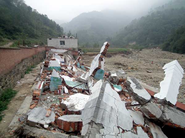 在考察组进村的近10公里路段,道路完全被洪水冲毁,车辆只能在颠簸的河道中艰难前行,短短的路程竟走了近一个半小时才到达目的地。考察组看到的景象只能用触目惊心来形容。