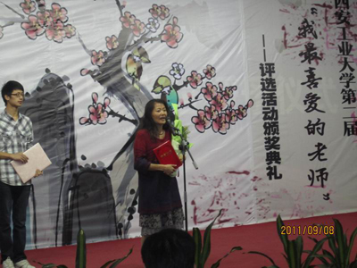 典礼在优美的歌舞中拉开帷幕。首先,校学生会主席王艳丽同学对第二届“我最喜爱的老师”评选过程做了简要的介绍。本次活动由校工会、校团委、校学生会主办,于5月19日开始,在全校三、四年级学生提名推荐的基础上,产生“我最喜爱的老师”候选人51人。通过风采展示, 6月22日-6月28日,校学生会在全校三、四年级学生中发放并回收选票5000余张,经校学生会汇总,共评选出“我最喜爱的老师”20人。