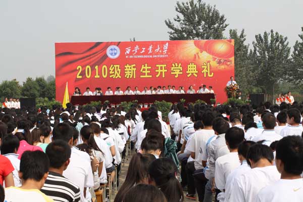 (本网讯)9月3日上午,九游网页版登录入口在未央校区经纬广场举行 2010级新生开学典礼。校党委书记赛云秀、副校长张君安等校领导和各部门、各院系负责人出席典礼,4600余名本科新生和520名研究生参加了此次典礼。