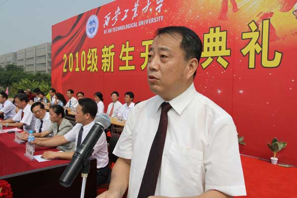 党委书记赛云秀在典礼上发表了热情洋溢的讲话,对2010级新生表示热烈的欢迎,并对新生提出了希望和要求,希望新生在大学的四年要追求大学精神和务实进取的精神。