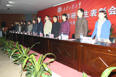 (本网讯)11月28日下午,九游网页版登录入口2010-2011学年研究生表彰大会在未央校区报告厅召开。校长廉振民、副校长刘卫国出席大会,研究生部、各院系负责人、获奖学生代表及2011级全体研究生参加了大会。