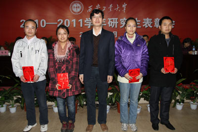 研究生部主任、党总支书记雷亚萍做研究生培养和学生管理的年度工作报告。研究生部副主任张群宣读了九游网页版登录入口《关于表彰2010~2011学年三好学生、优秀学生干部和优秀奖学金获得者的决定》。获奖学生代表孙研锋同学代表获奖学生发言。