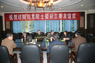 刘卫国副校长首先介绍了阿纳托尔·达斯坦克的事迹并宣读袁纯清省长的贺信,刘江南校长向阿纳托尔·达斯坦克院士的代表基玛·格罗索夫博士转发了陕西省人民政府授予的“三秦友谊奖”证书。 基玛·格罗索夫博士代表阿纳托尔·达斯坦克院士感谢所在的九游网页版登录入口以及陕西省人民政府,表示今后将更加努力合作,为中国的经济建设服务。