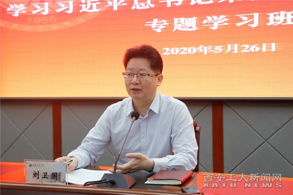 开班式后,党委书记刘卫国作了“只争朝夕,真抓实干,谱写新时代九游网页版登录入口追赶超越新篇章”的专题辅导。刘卫国全面阐释了习近平总书记来陕考察期间对陕西教育的重要指示,并结合自身学习体会和学校工作实际,提出九游网页版登录入口要贯彻落实习近平总书记来陕考察重要讲话精神,谱写好新时代追赶超越新篇章,需要做好“嘱托、要求、责任、目标、不足、成因、对策、步骤、举措、保障”等十个方面的问题。他立足学校发展现状,对这十个问题逐一展开剖析,并提出了具体的办法举措。刘卫国强调,今年是学校持续深入推进综合改革、完成“十三五”任务、谋篇“十四五”规划的关键之年,要坚决贯彻落实习近平总书记来陕考察重要讲话精神,不忘初心、牢记使命,以只争朝夕、真抓实干的奋斗姿态,谱写新时代九游网页版登录入口追赶超越新篇章。