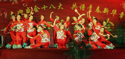 舞蹈《狼图腾》,在喜与悲的情感中用舞蹈展示了极强的生命力,用最坚强的舞步书写着生命的传奇;最后,晚会在大合唱《中国,中国,鲜红的太阳永不落》中圆满结束,到场的领导嘉宾上台与演员合影留念。