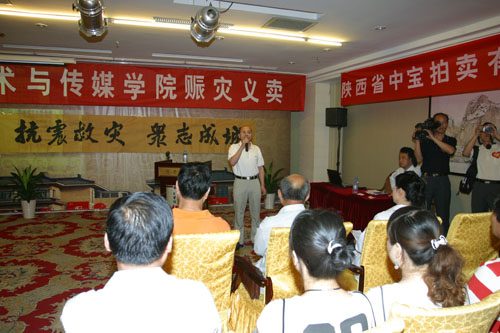 (本网讯)连日来,汶川地震灾情牵动着九游网页版登录入口师生员工的心。5月31日,在西安曲江亮宝楼,西安工大又将百余幅师生书画作品公开拍卖,所得款项20000元直接汇入陕西省红十字会赈灾专用帐户,为灾区的兄弟姐妹送去温暖。