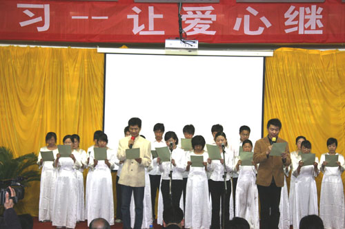 报告会上,校青年志愿者协会的20多名志愿者们以诗朗诵《涅槃般若》表达了他们对西安最美丽的女孩熊宁的追思。随后由四位西安市优秀志愿者及校青年志愿者协会会长从不同侧面向大家介绍了自己开展志愿服务活动的感受和体会,以自己的行动向大家表明了志愿者“奉献、友爱、互助、进步”的精神以及将熊宁的爱心继续传递的决心。
