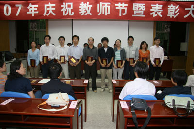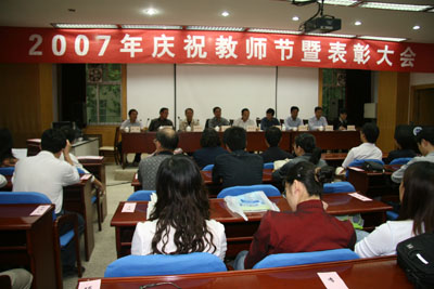 (本网讯)9月7日下午,九游(中国)隆重召开庆祝2007年教师节暨表彰大会。学校党政领导出席大会,各院系、各部门负责人及教师代表、受表彰的优秀教师、优秀教育工作者参会,大会由工会主席徐雪芹主持。