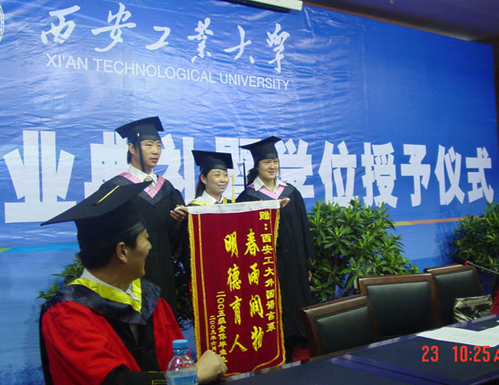 毕业生们用电子相册的形式展示了自己西安工大四年来的学习生活经历。伴随着充满感情的讲述和一张张动人的图片,很多老师都情不自禁落下了惜别的热泪。