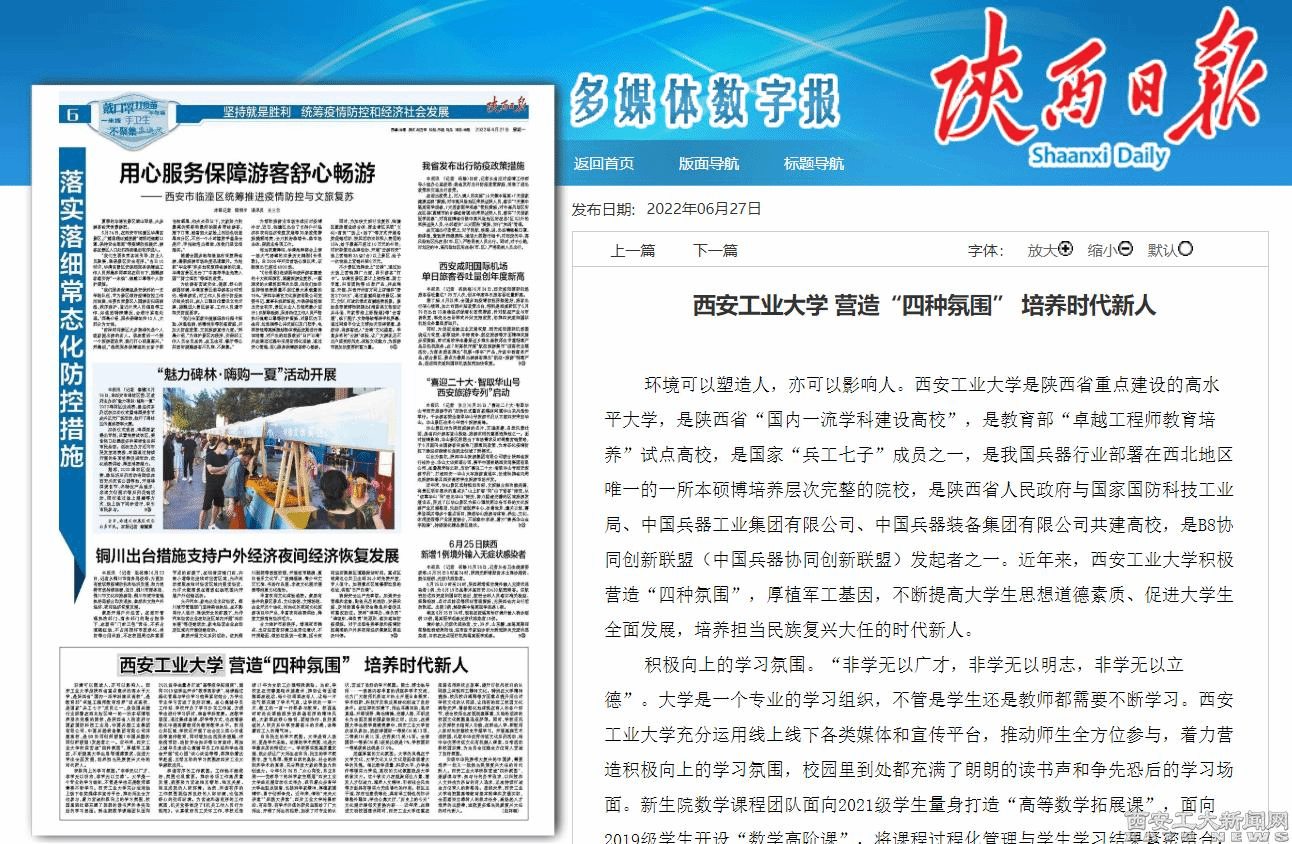 (本网讯)6月27日,《陕西日报》刊登校长赵祥模《九游网页版登录入口营造“四种氛围” 培养时代新人》署名文章。