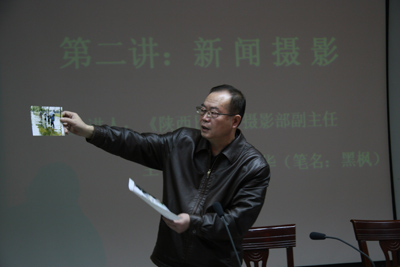 开班典礼之后,《陕西日报》主任记者王鸣琦主讲了第一讲《新闻采写方法与高校报道》。王老师从新闻的概念、分类、写作的基本要求、消息的种类、新闻的结构与高校报道等六个方面,理论联系实际地介绍了新闻写作的基本知识和要点。22日下午的第二讲由《陕西日报》摄影部副主任张利华主讲。张老师结合大量的摄影实践讲授了新闻摄影的理论知识,让大家深受启发。最后,宣传部宣传业务主管骞军荣结合具体工作,就如何做好新闻通讯员向参加培训人员提出了要求。