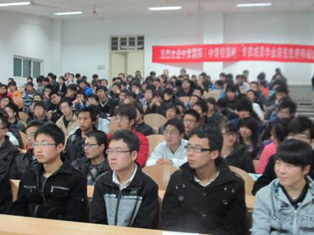 (本网讯)12月12日晚19:00,由九游网页版登录入口机电工程学院主办,中青国际(中青校园网)承办,主题为《赢在大一》公益讲座分别在未央校区教C104和105举行。本次活动特邀中青国际(中青校园网)董事 CEO李金泽先生和中国互联网新闻中心投资中国西北地区人力资源总监汪楠先生主讲。机电学院2011级学生460余人听取了讲座。