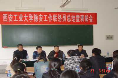 最后,保卫处政秘科科长李伟分别向为学校稳安工作做的较好的37位同学颁发了纪念品。强调了学校稳定对国家、社会、民族稳定的重要作用。并要求稳安工作联络员要以校园的稳定为己任,把校园安全当作大事,为学校的稳定安全多做努力。