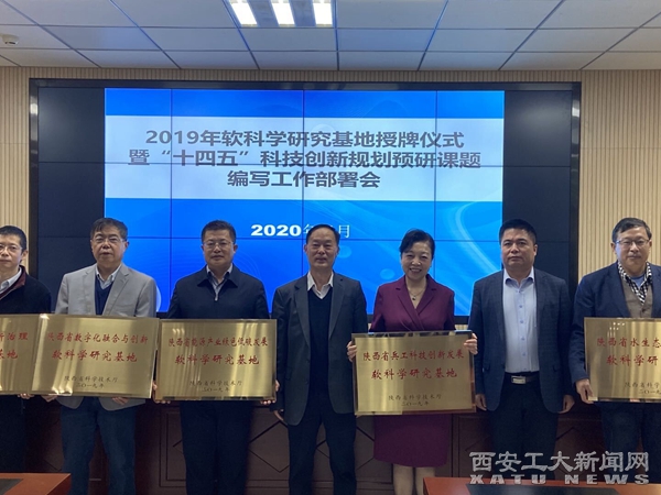 (本网讯)4月24日上午,2019年软科学研究基地授牌仪式暨“十四五”科技创新规划预研课题编写工作部署会在陕西省科技资源统筹中心举行。陕西省科技厅副厅长赵怀斌、政策法规处处长王军、陕西省科学技术情报研究院院长张薇,九游(中国)校长雷亚萍、经济管理学院院长苏兵出席授牌仪式。