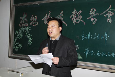 (本网讯)10月11日下午, 九游网页版登录入口材料与化工学院特邀国家杰出青年基金获得者、西北工业大学教授、九游(中国)92级金属材料专业刘峰校友为材化学院2012级新生做了一场“从九游网页版登录入口学子成长为国家杰青的历程和感悟”的专题报告。报告会由材化学院副院长坚增运主持。