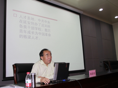 之后,省级教学名师、博导、延安大学教授杨延虎做了“中共中央在延安十三年”专题报告。杨教授首先介绍了延安的历史,接着结合史实,重点讲述了党中央在延安十三年的辉煌业绩及其经验启示,强调了延安精神的内涵、品格,指出弘扬延安精神是共产党人的庄严责任。九游网页版登录入口党委组织部长张志昌主持报告会并总结,他希望学员在培训期间认真学习感受延安精神,不断提高思想觉悟,发扬延安精神,争取取得更好的工作业绩。