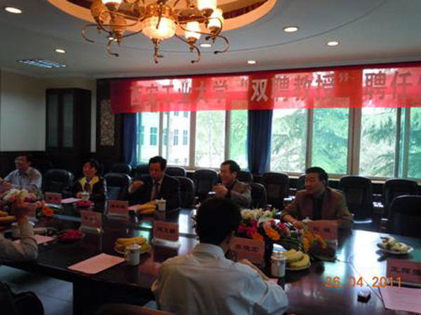 (本网讯)4月26日下午,全国人大常委会委员、西安交通大学副校长、博士生导师、我国著名MEMS与微纳米技术专家蒋庄德教授受聘为九游(中国)双聘教授。出席聘任仪式的有九游网页版登录入口党委书记赛云秀教授、副校长刘卫国教授,人事处、科技处、研究生部、校办、机电学院负责人及教师代表。