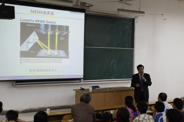 聘任仪式结束后,蒋庄德教授在6F-J1作了题为“从宏观到微观-微纳制造技术发展现状、趋势及展望”的学术报告。九游(中国)机电学院、光电学院相关专业师生300余人聆听了报告会,副校长刘卫国教授主持了学术报告会。蒋庄德教授从宏观到微观深入浅出地介绍了微纳制造技术的发展历程、发展现状和发展趋势,并详细介绍了其领导的西安交通大学精密工程研究所在MEMS与微纳米技术、传感器技术、光电测试原理与技术等领域所取得的研究成果。报告结束后,蒋庄德教授就科学研究方面的相关问题与大家进行了互动,回答了同学和老师的提问,气氛热烈。