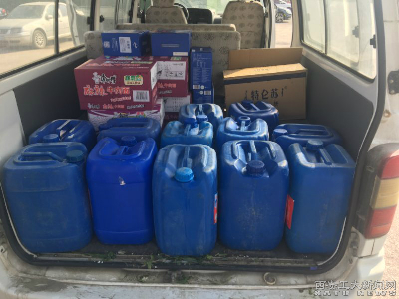 2月9日,马凡奇通过学院联系到校医院,将300公斤消毒液捐赠给了学校。在搬运消毒液的过程中他的兴奋之情溢于言表:“能为学校做些力所能及的事情,我感到非常幸福!”除此之外,马凡奇还向长安区斗门街道办事处和先锋村委会捐赠了110箱纯牛奶,守护一线社区工作者健康。