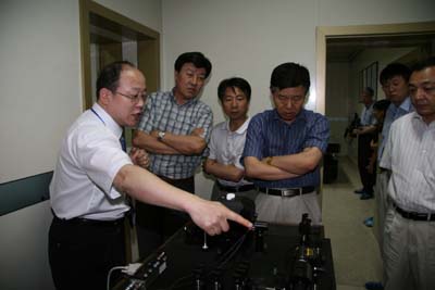 随后,专家组考察了光学工程学科基地。光电工程学院副院长弥谦教授就微光电制造技术与应用、薄膜与等离子体技术、光学加工与检测技术、靶场光电测试技术等特色研究方向以及近年来取得的成绩进行了介绍。