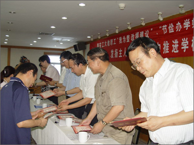 座谈会结束后,校工会与国资处、后勤集团共同启动了“教职工节水节电,从我做起”活动,与会的教职工与校领导在现场踊跃签名参加活动,并表示要在今后努力践行。