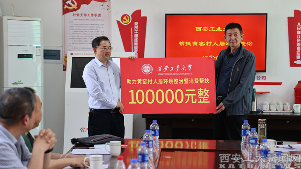 赵祥模代表学校向黄窑村捐赠人居环境整治暨消费帮扶资金10万元。