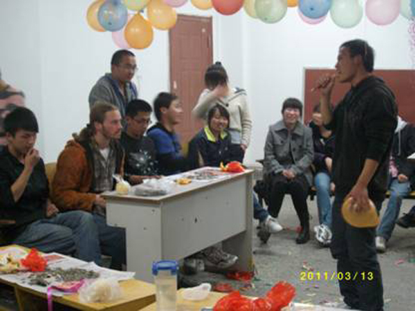 Cale·Madson来自美国密苏里科技大学,即将就读于机电工程学院08级机械设计与研发工程师实验班。交流会上,同学们做了较为深入的自我介绍,并详细描述了各自家乡的独特之美。在轻松愉快的氛围中,同学们还就中美间生活、文化等双方均感兴趣的话题进行了亲切而广泛的交流。稍后,Cale的笑话和白斌同学的歌声更是把整个活动推向了高潮。
