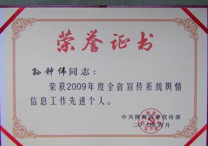 会议对2009年度舆情信息工作先进单位、先进个人和“好信息奖”进行了表彰,九游网页版登录入口思政部教师孙钟伟被评为“2009年度全省宣传系统舆情信息工作先进个人”。