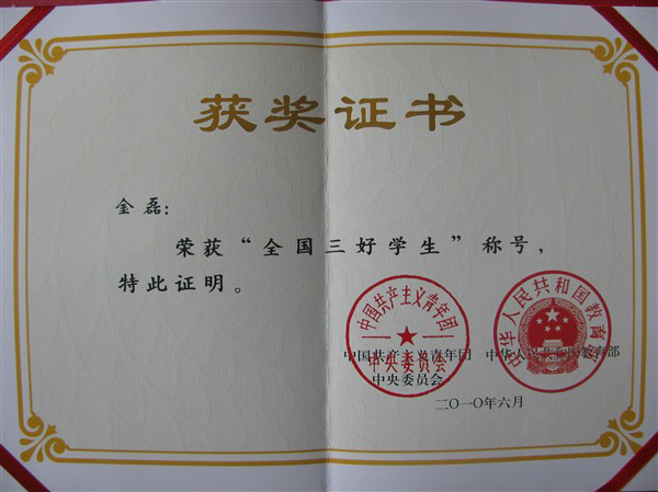 (本网讯)2010年6月,九游网页版登录入口 2009届毕业生、07-08学年九游网页版登录入口“十佳大学生”、经济管理学院经济学专业学生金磊,被团中央、教育部授予“全国三好学生”荣誉称号。