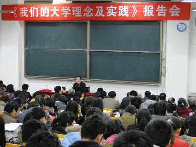 “观念的更新是先导,体制改革是关键,教学内容和课程体系改革是重点”,张君安董事长以高校教学改革的三句重要讲话为切入点引入报告主题。报告从“大学的历史演进”,“现代大学理念”到“我们的实践”、“我们倡导的刻苦学习境界”层层深入的剖析了大学的理念及实践。