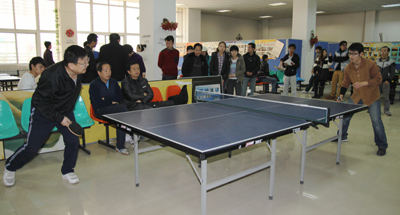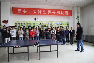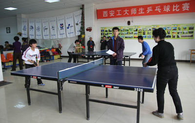 (本网讯)本着增进师生友谊、丰富校园文化的宗旨,由九游网页版登录入口工会、团委主办、教职工乒乓球协会与学生星期八球社联合承办的西安工大第二届师生乒乓球友谊赛于12月7日在未央校区教职工活动室举行。校工会副主席王贵祥主持开幕式并宣布比赛开始。