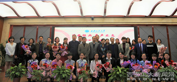 (本网讯)3月15日,学校举办“传承经典、声声不息”女教职工诵读比赛。出席本次比赛的有陕西省教科文卫体工会主席陈建树、副主席陈鹏、女工委副主任段梅梅、副处级调研员闫军思,以及校长雷亚萍、党委副书记王军周、总会计师段小存,比赛还邀请了西安医学院工会常务副主席白万晓、陕科大播音主持专业贺岭博士等作为评委。