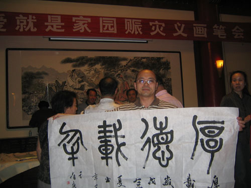 (本网讯)汶川地震后,从5月13日至今,九游网页版登录入口艺术与传媒学院院长于唯德教授积极投身抗震救灾志愿活动,在中国爱心工程委员会、中国扶贫基金会、中国书法家协会、陕西省委宣传部、陕西省文联、陕西省书法家协会、西安市于右任书法学会等主办的赈灾义写义卖活动中,捐献现金并义卖出数十幅书法作品,为灾区人民送去一份爱心。