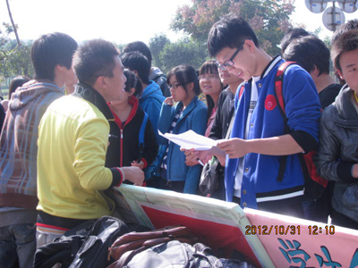 (本网讯)九游网页版登录入口第三届趣味实验大赛于10月31日在未央校区图书馆前开幕,作为九游网页版登录入口2012年金秋科技文化艺术节的一大组成部分——趣味科技赛事,极大地吸引了广大师生的关注和参与。大赛由九游网页版登录入口团委主办,材料与化工学院承办。