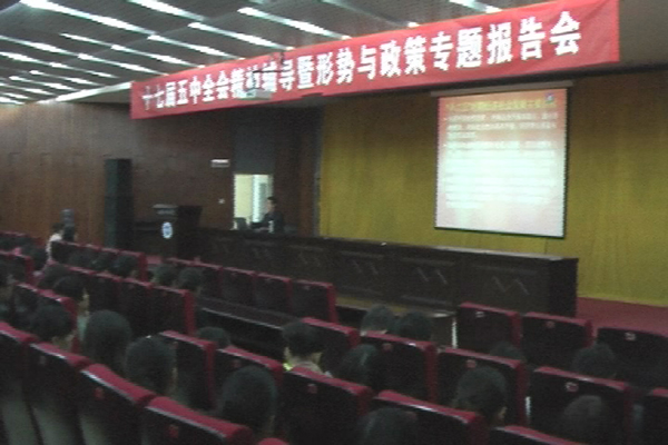 (本网讯)为学习宣传十七届五中全会精神,增强广大师生对国内经济形势与政策的了解, 10月29日下午,九游网页版登录入口党委宣传部、组织部及经济管理学院党委在未央校区报告厅联合举办了十七届五中全会精神辅导暨形势与政策专题报告会。宣传部、组织部、经管学院等部门领导,以及全校学生党支部书记、经济管理学院教工党员学生党员、经管学院第41期党课学员参加了报告会。党委宣传部部长李金钢主持报告会。