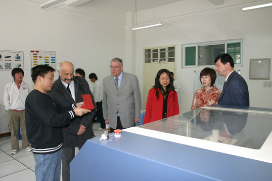 在西安工大国际交流与对外合作处和工业中心负责人的陪同下,客人首先参观了未央校区工业中心的认知馆、加工中心、语音室等,客人对西安工大良好的实践教学条件给予充分的肯定,并饶有兴趣地观摩了实践教学过程。随后,米歇尔-胡院长、让-彼埃尔-阿斯屈克院长对西安工大2007级准备赴巴黎第十三大学经济管理学院2+1+1留学项目的5位二本学生和独立学院学生进行了面试。面试结束后,双方进行了深入的会谈,在经济管理学院学生2+1+1双学士学位留学项目,4+1+2本升硕留学项目上进行了充分的探讨,为今后进一步合作达成了共识。国际交流与对外合作处负责人转达了校领导对法国客人的良好祝愿。