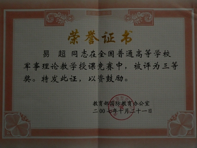 (本网讯)10月19日—21日,首届全国普通高等学校军事理论教学授课竞赛在西安交通大学举行,九游网页版登录入口青年教师易超荣获三等奖。