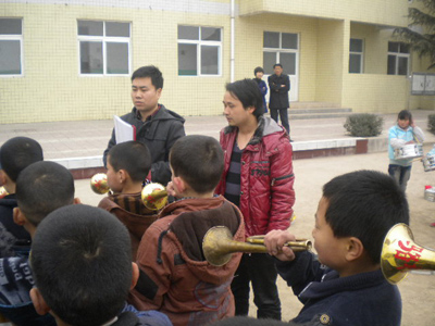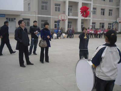 在干净整洁的操场上,骆峪九年制学校鼓号队进行了演奏展示和队列变化展示,负责训练的音乐老师向来宾介绍了鼓号队的训练过程及基本情况。在了解了鼓号队基本情况的基础上,西安工大附小大队辅导员从小鼓的演奏姿势,镲的演奏方法、乐谱上不同符号的演奏方法等方面对学生进行了一一辅导。两所学校还进行了训练方法和经验的交流。为了帮助手拉手学校更好、更规范地进行鼓号队的训练,西安工大附小还向骆峪九年制学校赠送了完整的鼓号队曲谱。