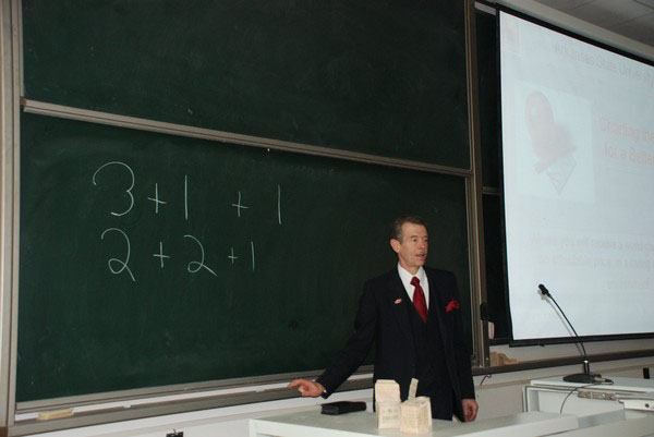 会谈结束后,霍华德校长一行驱车来到未央校区,饶有兴趣的为北信学院经济与贸易系、管理信息系近300名学生做报告。霍华德校长风趣幽默的语言,内容丰富的报告,受到同学们的热烈欢迎。